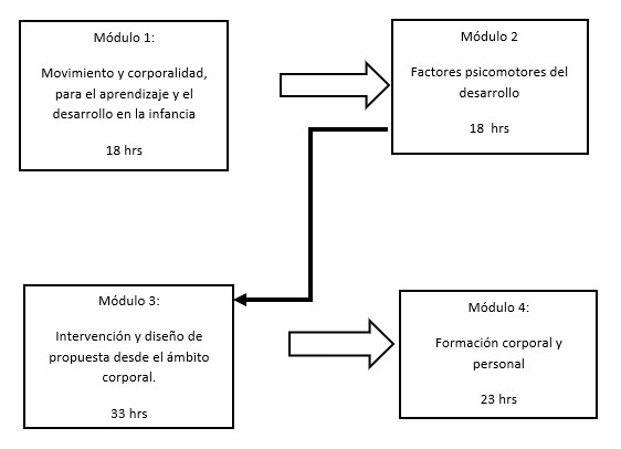 La formación corporal permitirá a los/as participantes, desde el sustento teórico, la aplicabilidad de los contenidos  propios del diplomado, favoreciendo el análisis crítico respecto a la fusión entre la  corporeidad- movimiento  y desarrollo.