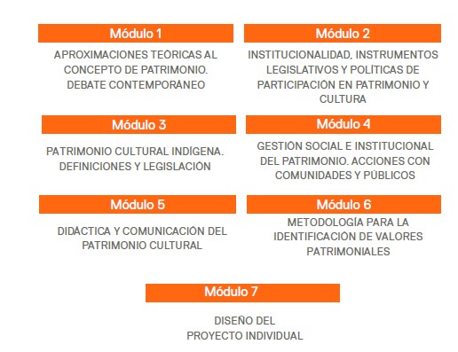 Formar especialistas en gestión e investigación del patrimonio cultural con competencias para diseñar y ejecutar proyectos participativos que integren identidad, desarrollo y comunidades.